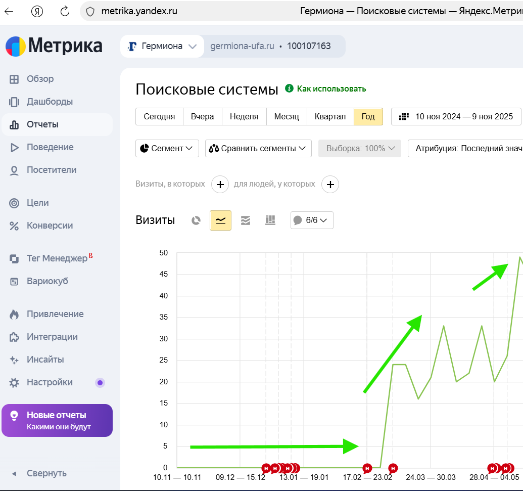 Регулярные дοступные отчеты: трафик, позиции, конверсии, ROI, бюджет расхода.